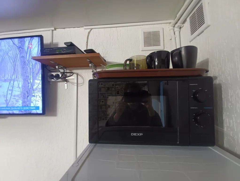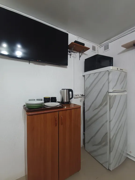 - Холодильник, микроволновка, электрочайник, посуда,