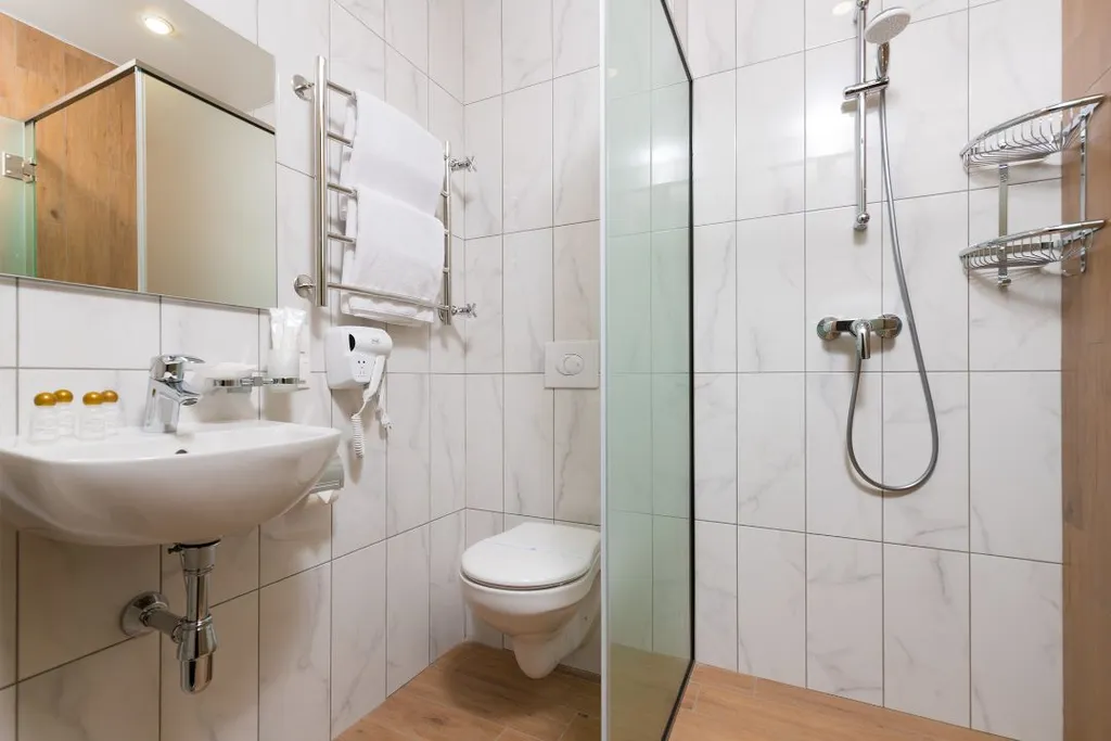 Ванная комната оснащена: ванной, душевой кабиной, феном, набором косметических принадлежностей, халатами и тапочками, санузел, дополнительный санузел. Площадь комнат составляет 35 м2.