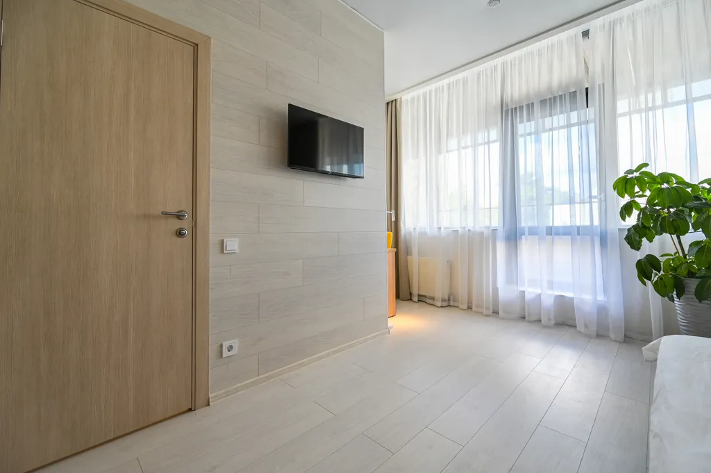 Приятный отдых и крепкий сон обеспечит комфортная кровать размера queen size с ортопедическим матрасом (210х180) см и мягким изголовьем.