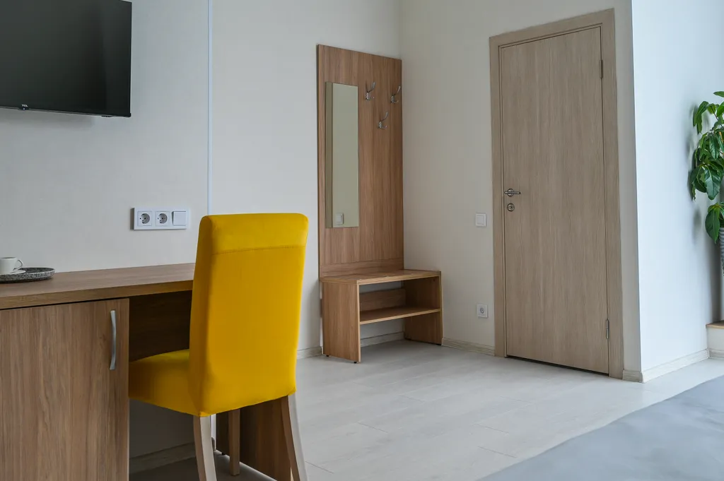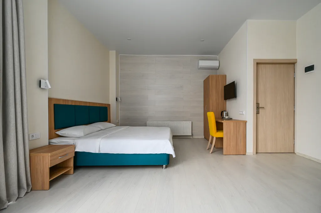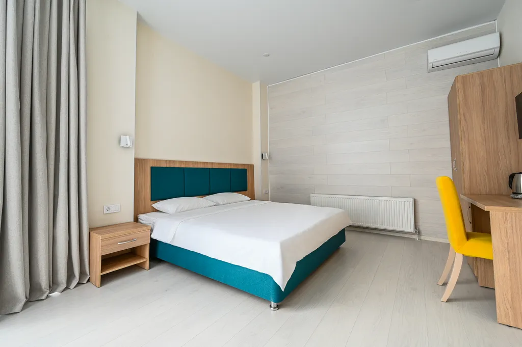 Приятный отдых и крепкий сон обеспечит комфортная кровать размера queen size с ортопедическим матрасом (210х180) см и мягким изголовьем.
